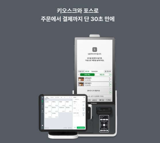 - 키오스크 및 POS 시스템: 사용자 편의를 극대화한 셀프형/주문형 모드 전환, 여러 결제 수단 지원