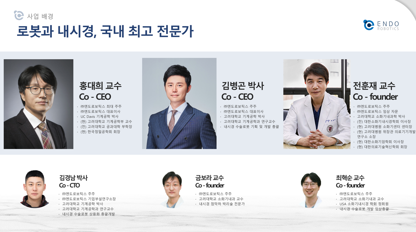 그 선두에 엔도로보틱스가 있으며, 저희는 내시경 무절제 수술이 용이하게 집도될 수 있도록 하는