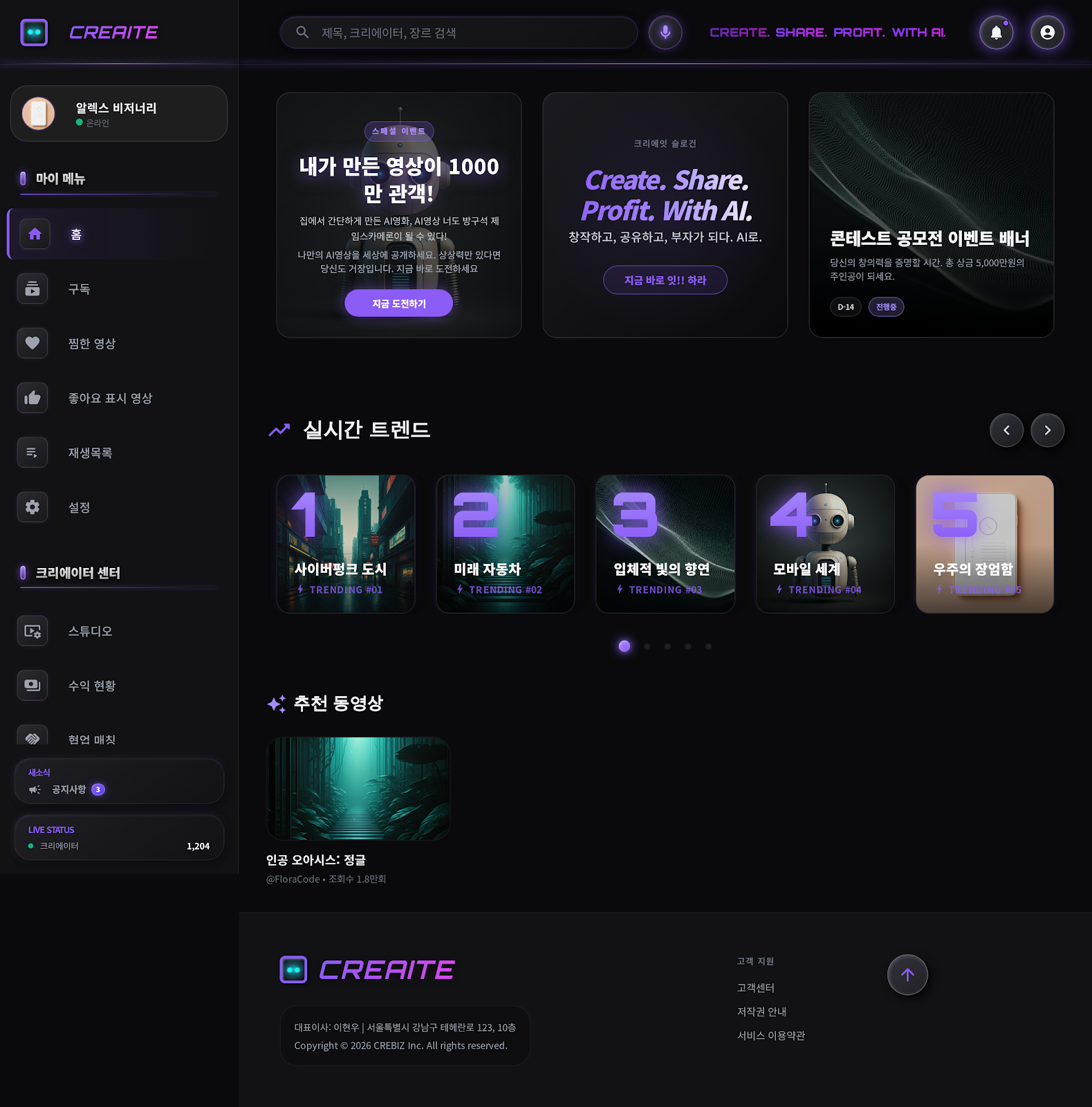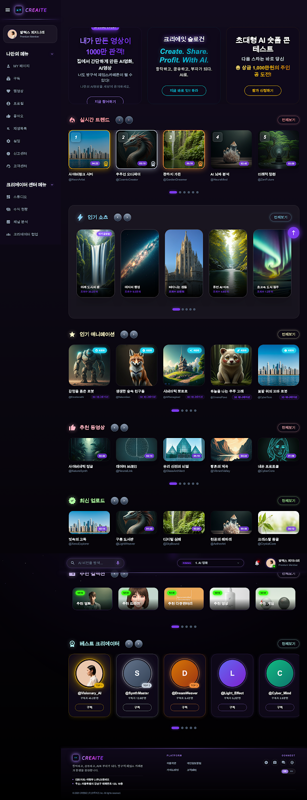 CREAITE는 단순한 앱이 아닙니다 AI 시대의 유튜브이자 AI 시대의 넷플릭스를 목표로 하는 차세대 미디어 인프라입니다.