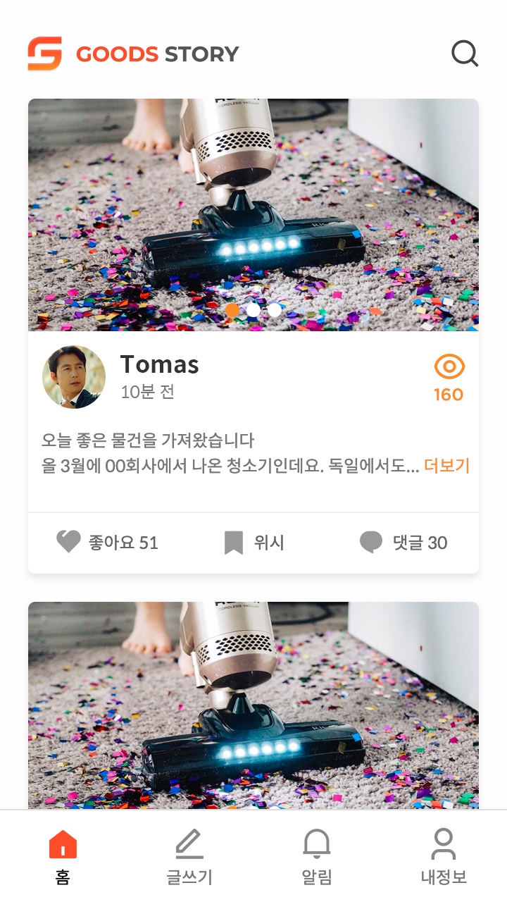 GOODS STORY는 이용자의 관심사(상품)를 기반으로 다양한 멀티미디어와 재미있는 이야기를 포스팅하여 같은 관심사를 가진 이용자들과 공유하는 신개념의 소셜 네트워크 서비스입니다.