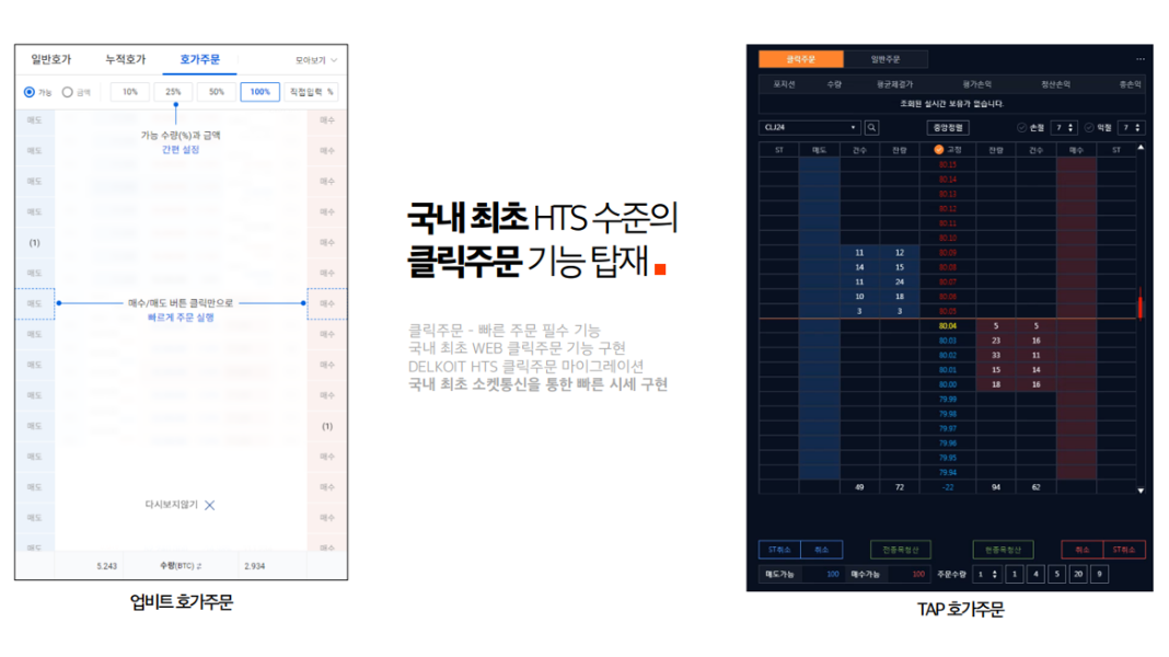 - HTS 최상위 주문기술인 클릭주문을 국내 최초로 WTS에 구현
