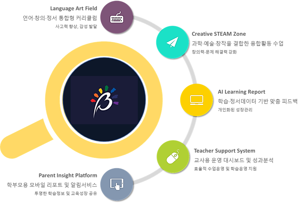 ③ 교사·학부모·운영자에게 대시보드와 리포트 형태로 피드백되고