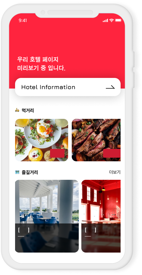 호텔비즈니스를 단순 객실판매와 솔루션 도입 수익 모델이 아닌 호텔과 고객 + 주변 상권을 연결한 호텔 종합관광플랫폼