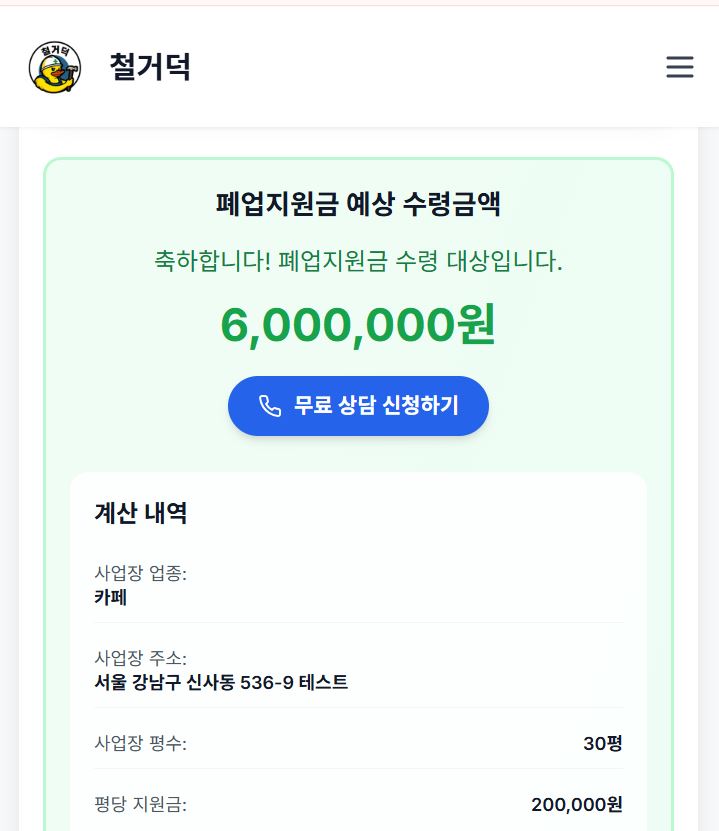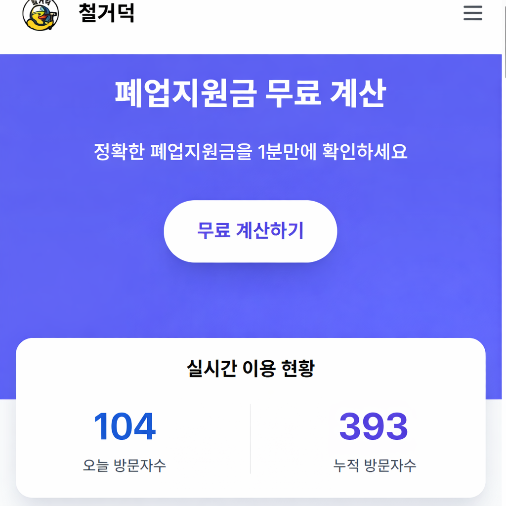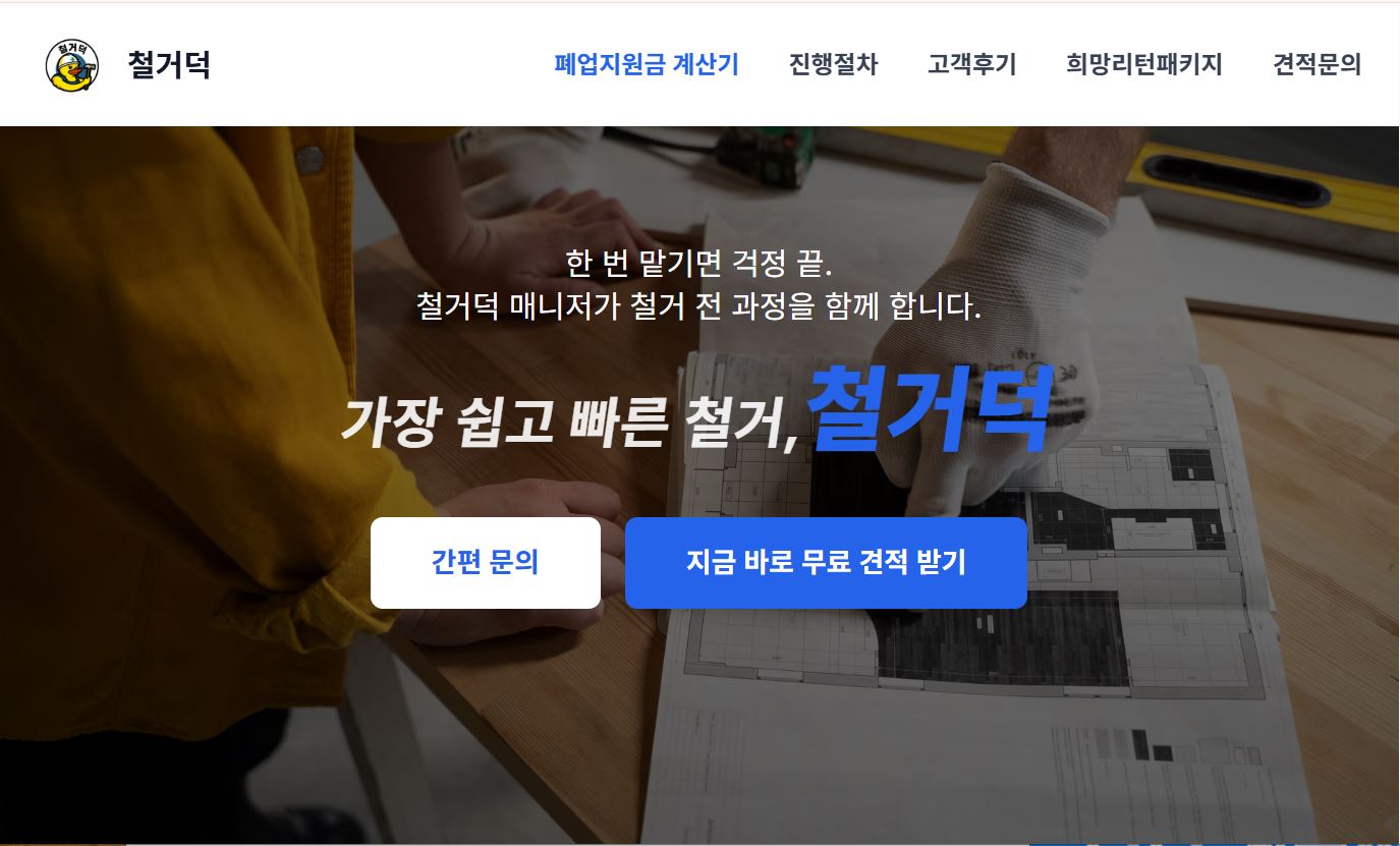 철거덕은 연간 약 100만 명에 달하는 폐업·이전 사업자가 겪는 철거 과정의 불투명성과 정보 부족 문제를 해결하기 위해 탄생한 플랫폼입니다. 철거 공사는 최소 수백만 원에서 수천만 원까지 비용이 발생하지만, 고객은 여전히 발품에 의존해 업체를 찾고 신뢰도를 판단해야 하는 구조에 놓여 있습니다. 철거덕은 여러 철거업체의 견적을 한 번에 비교하고, 실제 공사 후 리뷰를 통해 신뢰도를 확인할 수 있는 환경을 제공함으로써 고객이 보다 합리적이고 안전한 선택을 할 수 있도록 돕습니다.