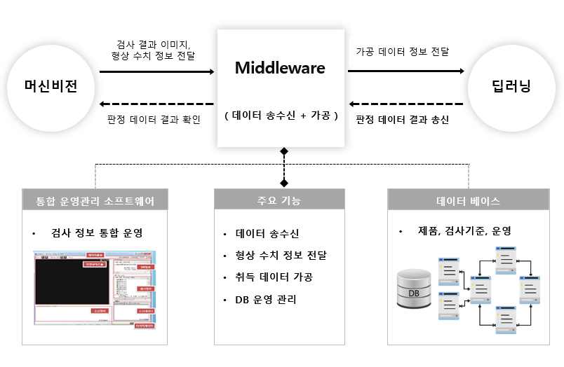 최근 미래기술로 각광을 받고 있는 인공지능(딥러닝)기술을 스마트제조(스마트공장)와 교육융합사업 등 2가지 분야에 적용하여 지능형솔루션 개발에 전력을 다한 결과, 스마트제조분야에는 머신비전 AI솔루션, 규격검출 AI솔루션, MES시스템, RPA솔루션 등을 보유하고 있고, 교육융합사업은 대학교육과정 운영관리 시스템, 학습성과 시스템, 지능형 온라인 소프트웨어 코딩 교육 플랫폼 등을 보유하고 있습니다.