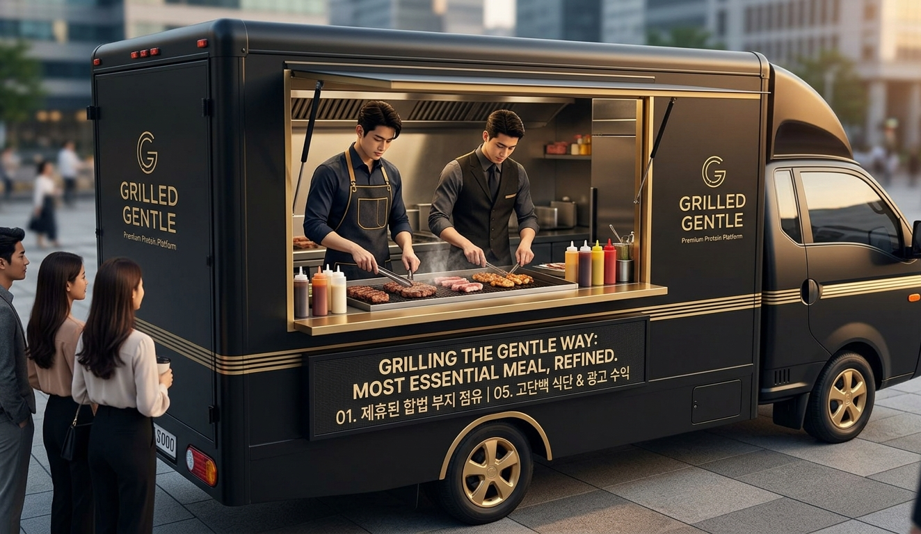 본 사업은 기존 이동식 푸드트럭 시장의 3대 고질적 문제(장소의 불안정성, 수익 구조의 단순함, 낮은 브랜드 신뢰도)를 비즈니스 모델의 재설계를 통해 해결한 **‘모빌리티 기반 프리미엄 플랫폼’**입니다. [Grilled Gentle]은 단순한 음식 장사를 넘어, 유휴 부지 활용과 디지털 광고 미디어를 결합한 고부가가치 시스템을 지향합니다.