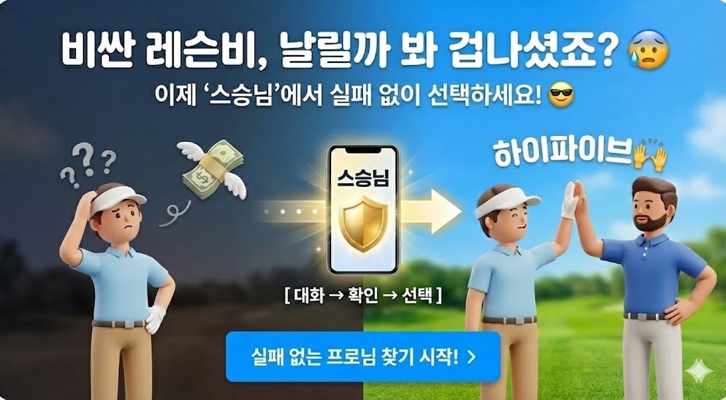 스승님에서는 소비자가 1:1 상담과 사전 소통을 통해 자신의 수준과 목적에 맞는 프로를 확인한 뒤, 파3·9홀·18홀·단체레슨·동계캠프 등 실전 레슨으로 확장할 수 있습니다.