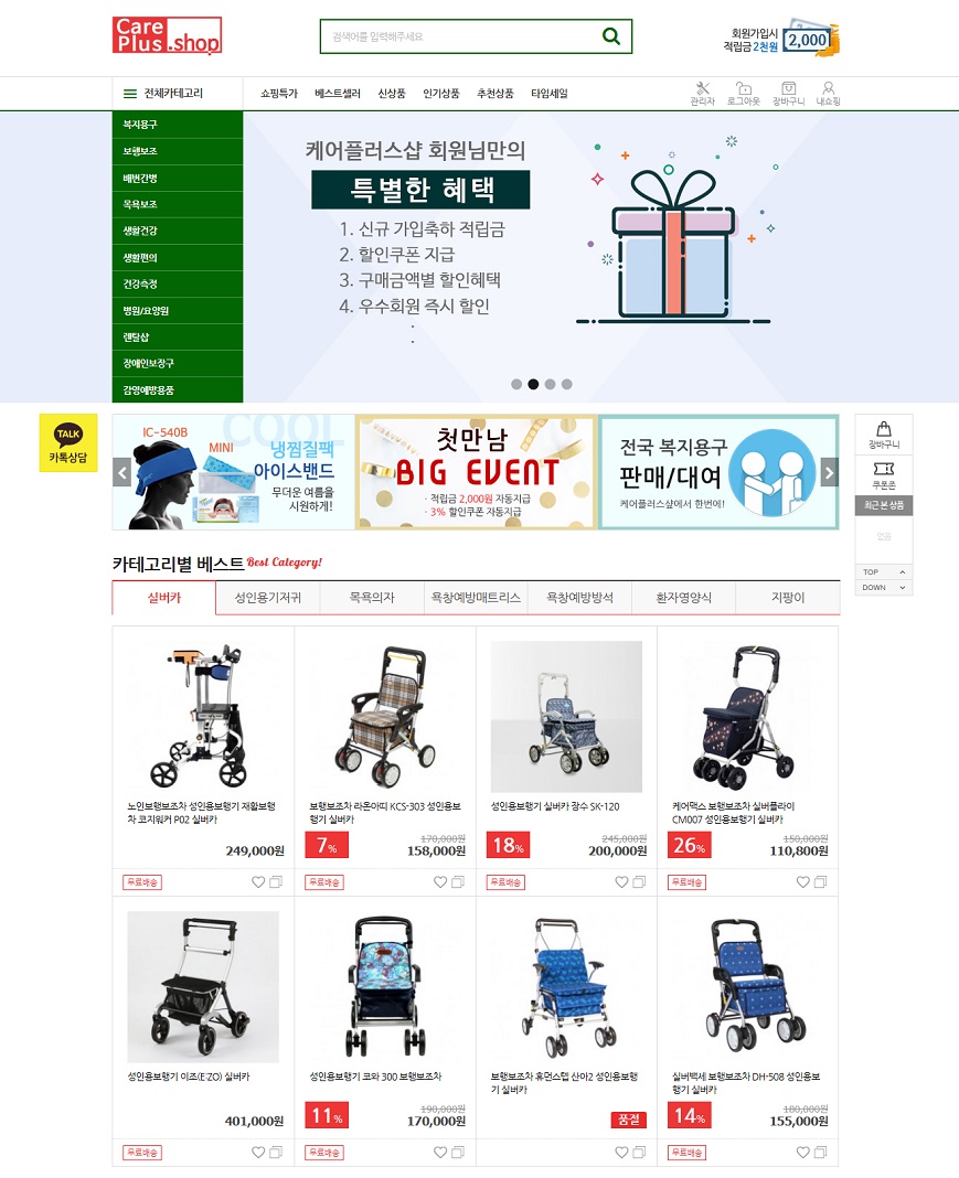 케어플러스샵은 노인장기요양기관인 재가센터를 대상으로 복지용구 특화 쇼핑몰을 분양하여 재가센터에서 복지용구 구매를 쉽게 하고, 무료 홍보를 지원하여 상생하는 시니어 커머스 플랫폼입니다. 단순한 상품 공급을 넘어 온·오프라인 통합 복지 유통모델을 자체 개발하고 상용화함으로써, 국내 복지 커머스 산업의 선도적 역할을 수행해왔습니다.