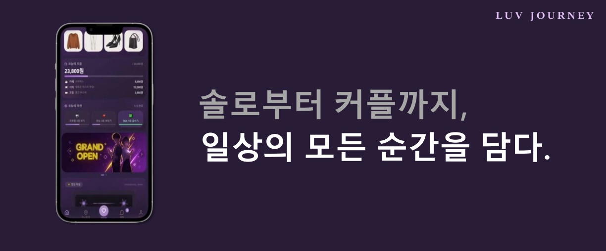 러브저니는 각각 사용자의 일상, 스타일, 소비 데이터를 실제 생활에 자연스럽게 녹아드는 UI/UX를 바탕으로, 단순한 기능 중심 서비스가 아닌 데이터가 축적 될수록 가치가 높아지는 구조를 지향합니다.