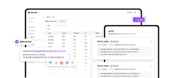 주요 서비스인 셀데이(Sellday)는 데이터 자동 통합, AI 기반 리드 스코어링, 실시간 영업 분석 및 자동화 기능을 통해 영업 효율성을 극대화합니다.