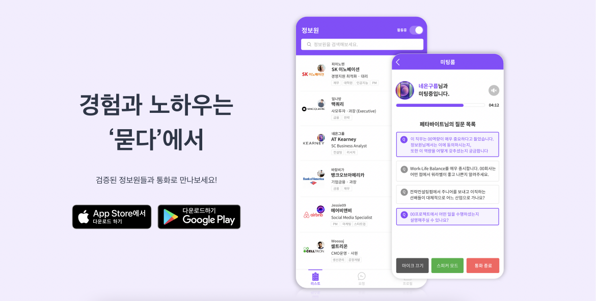 커리어 익명통화 앱 플랫폼 '묻다'를 운영하고 있습니다!