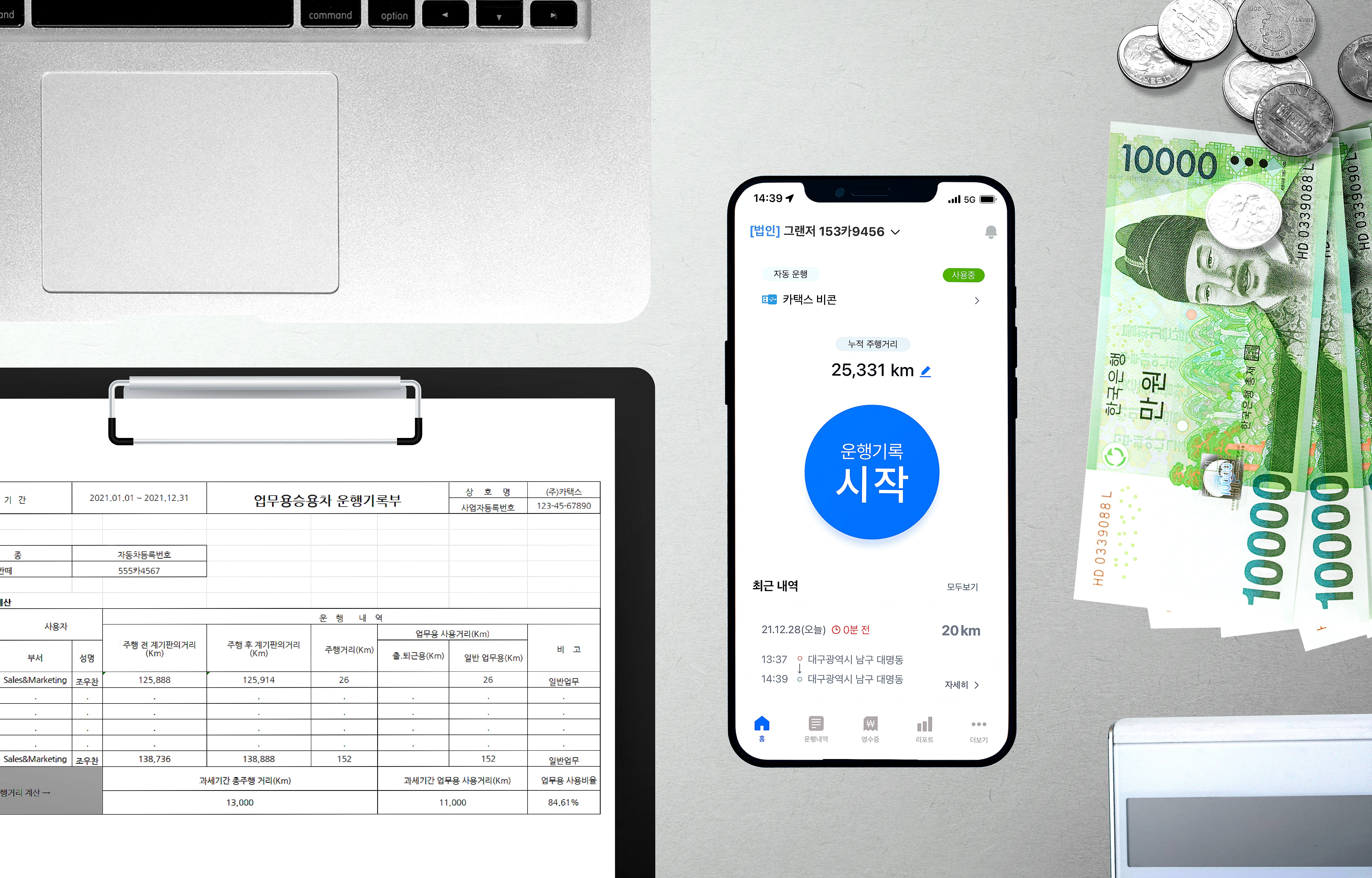 이러한 불편함과 위험 사항을 방지하기 위해 카택스는 별도의 단말기 없이 스마트폰 앱만 있다면 차량 운행 내역을 데이터로 기록해 국세청 양식 업무용 법인차량운행일지를 자동 생성 할 수 있고 차량 지출 및 영수증 관리가 가능하다.