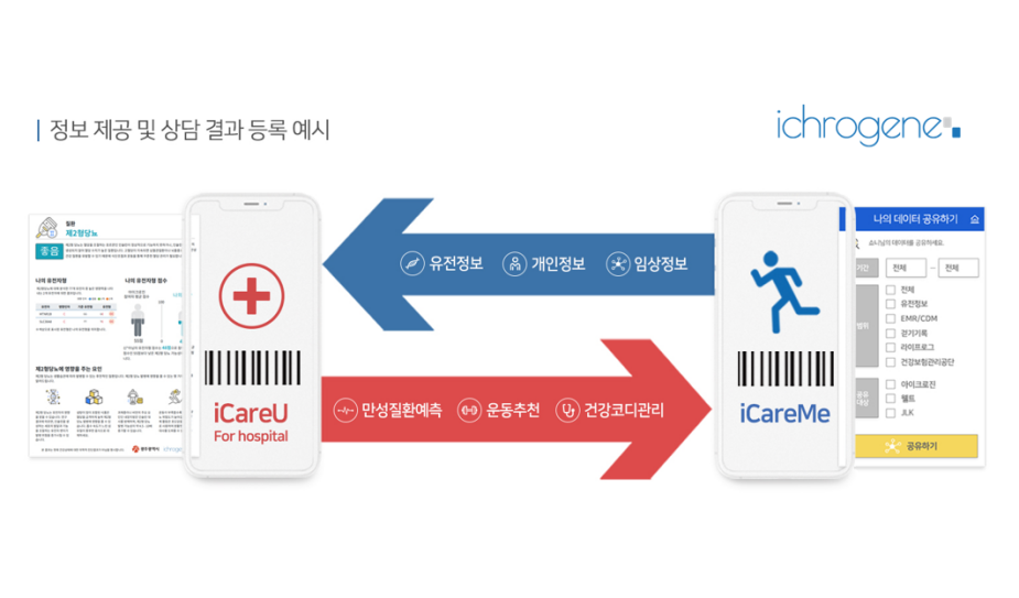 이번 마이데이터 사업에서 아이크로진이 구체적으로 개발할 예정인 서비스는 ▲유전체 데이터 기반 만성질환 (암, 당뇨 등) 예측 서비스 ▲유전체 기반 이종데이터 융합 만성질환 예측 및 관리 서비스 ▲유전체・의료 기록・라이프로그 데이터 관리 및 모니터링을 위한 스마트폰 어플리케이션(iCareMe) ▲의료진의 참여자 관리를 위한 플랫폼 및 어플리케이션(iCareU) ▲웰트・제이엘케이 등 제 3자 서비스 어플리케이션과의 연동 API 등이다.