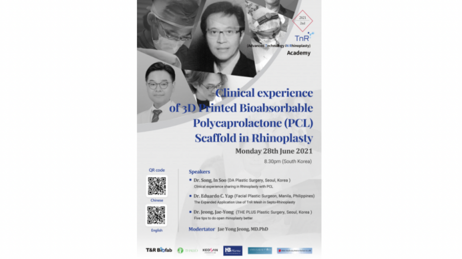 이번 웨비나(웹-세미나)는 중국, 일본, 태국, 대만, 베트남, 필리핀 등 10개국 총 328명의 코 성형 전문 성형외과 전문의들을 대상으로 진행했다. 3D 프린팅 기술을 바탕으로 출시된 흡수성 PCL(폴리카프로락톤, Polycaproactone) 스캐폴드 제품인 코 성형용 카트리쉬에 대한 다양한 지견 및 최신 코 성형 트렌드에 대해 논의됐다.
