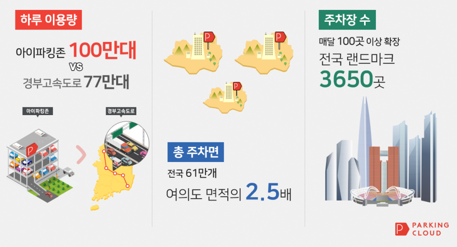 일일 주차량 100만대는 국내 1호 고속국도인 경부고속도로 하루 교통량 77만대(2019년)보다 23만대 많은 숫자다. 초 단위로 환산하면 1초당 12대 주차로 전년 대비 25% 이상 증가해 업계 최대 규모다.