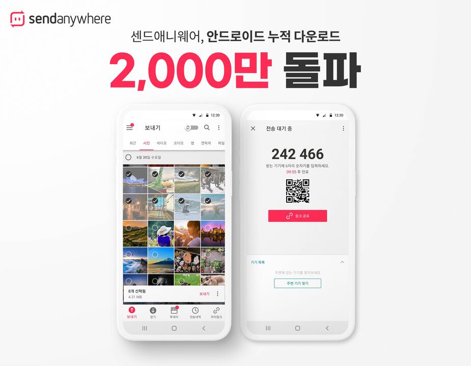 이스트몹의 글로벌 파일 전송 서비스 센드애니웨어가 구글 플레이 누적 다운로드 2,000만 회를 돌파했다.