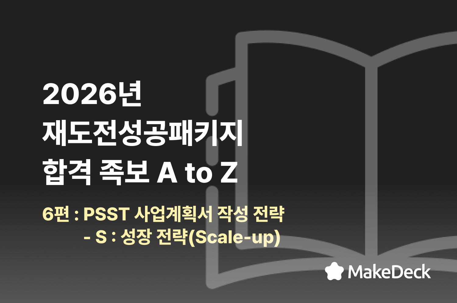 이번 콘텐츠에서는 심사위원의 '투자 확신'을 끌어내는 PSST의 피날레, 성장 전략(Scale-up) 파트를 다룹니다. '디자인 에이전시 폐업 후 AI 솔루션으로 재창업하는 기업'의 실전 시나리오를 바탕으로, 단순한 희망 회로가 아닌 상위 3% 수준의 치밀한 성장 서사를 어떻게 설계해야 하는지 메이크덱의 관점으로 풀어보겠습니다.