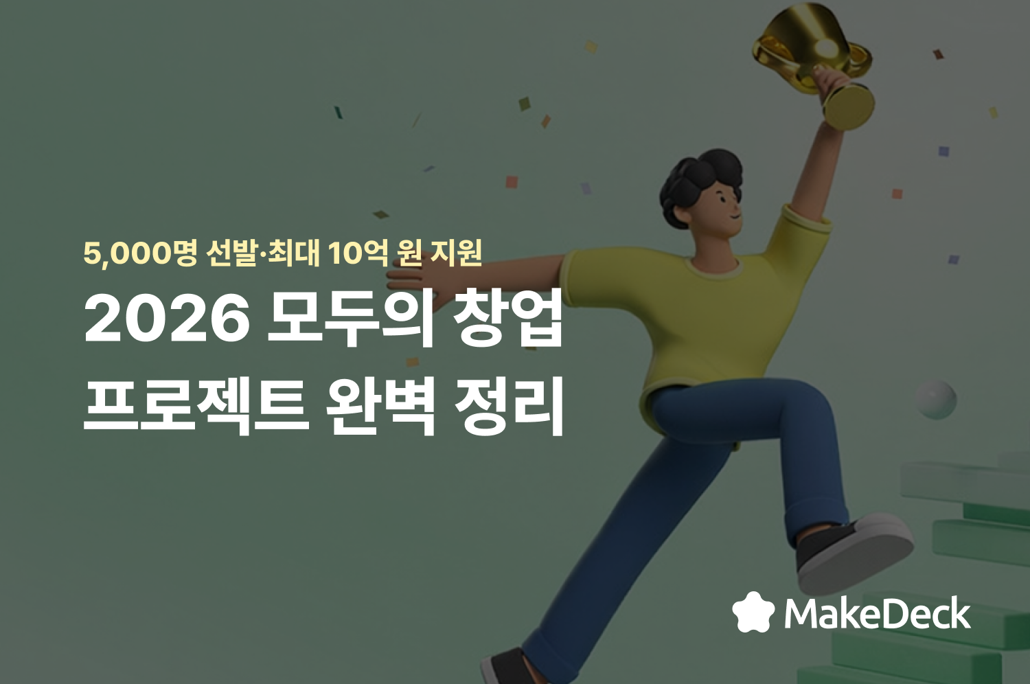 2026년, 당신의 아이디어가 대한민국을 대표하는 혁신 기업으로 성장할 첫걸음입니다. 지금 바로 메이크덱과 함께 가장 완벽한 도전신청서를 준비해 보세요.